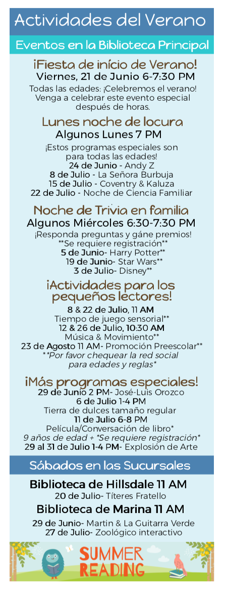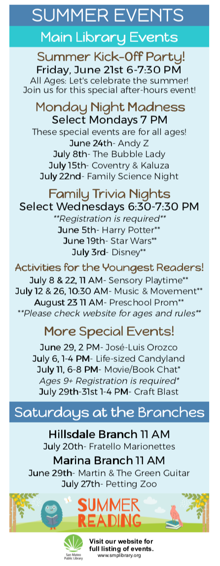 Sign up for the Library Summer Learning Challenge! Any one can register online to participate starting June 1st, children 18 years and under will get a free book for their first time signing up and a chance to win a $1,000 scholarship!